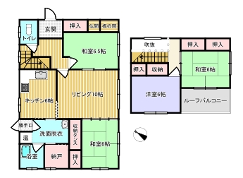 | 間取り | 4LDK L10帖・DK6帖・和6帖×2・和6.5帖・洋6帖 | ||